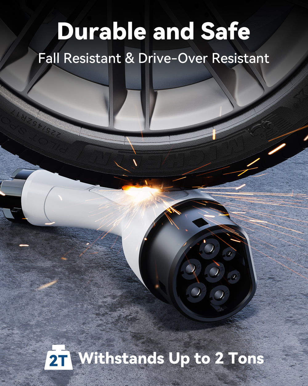 | Compatibilité universelle | Fonctionne avec tous les véhicules électriques et hybrides rechargeables avec entrées de type 2 ou CCS2 (IEC 62196-2). • Prise de type 2 → Bornes de recharge et unités Wallbox avec prises de type 2 • Connecteur de véhicule de type 2 → Entrée EV Non compatible avec : Type 1, CCS1, CHAdeMO, Tesla NACS ou GB/T. |