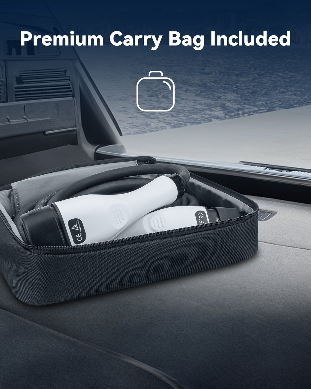 You will receive: 1× RamTouch Type 2 EV Charging Cable (22 kW, chosen length), 1× durable carry bag, 1× user manual, 1× set of removable Velcro straps, and access to our friendly customer service team.