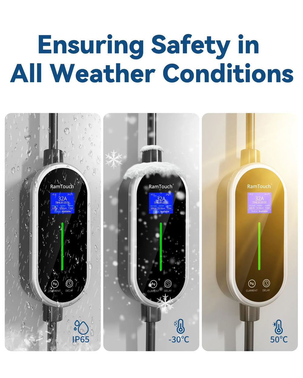| Comprehensive Safety Assurance: Equipped with 10 advanced safety features, an IP65 waterproof and dustproof rating, and a Type A RCD, this charger offers unwavering safety assurance - allowing you to charge with confidence in all weather conditions |