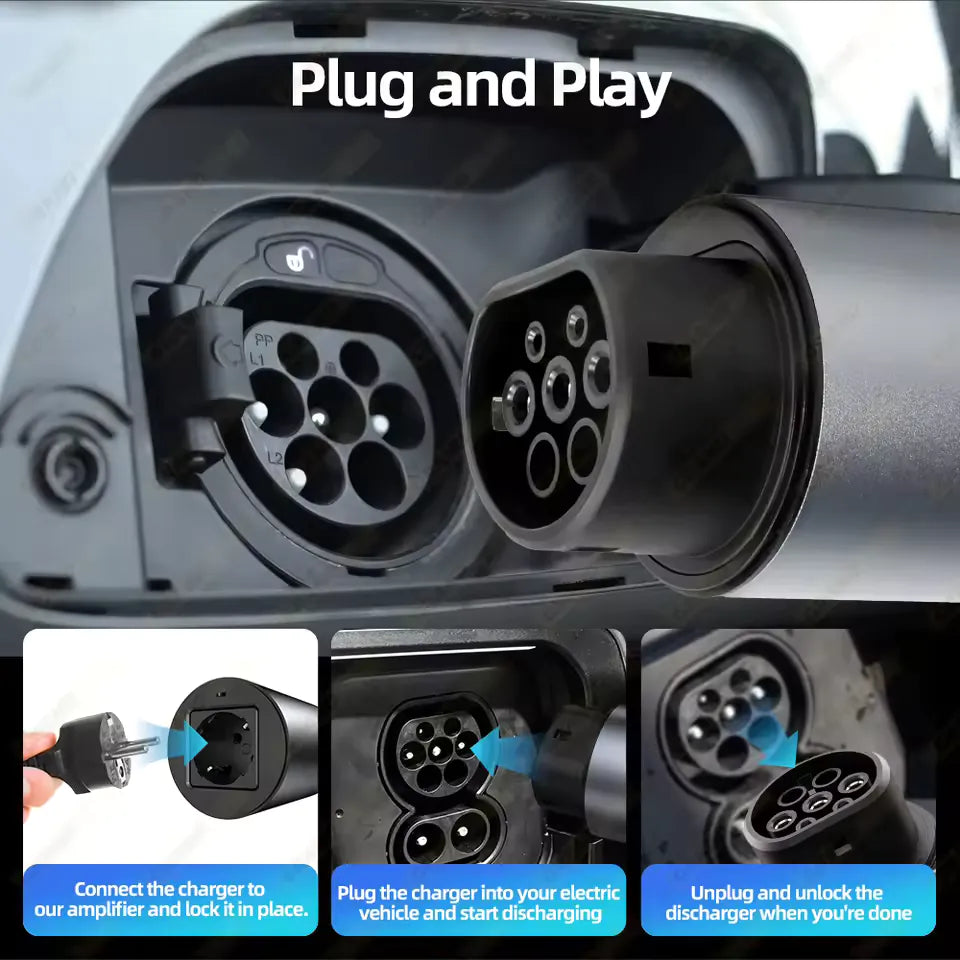 | AC Power Output | Connect your car’s V2L port to a standard 220V AC power socket, enabling reliable electricity for everyday use and outdoor activities. |